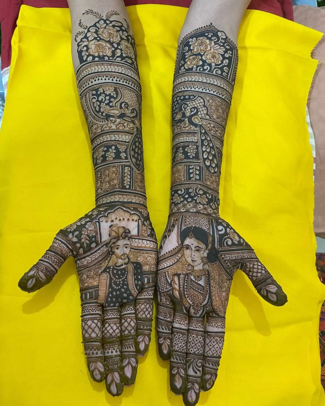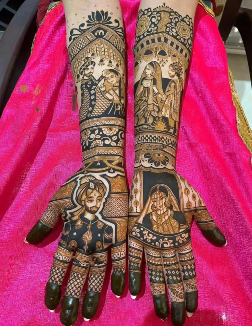 - Portrait Bridal Mehndi (Bride–Groom faces)